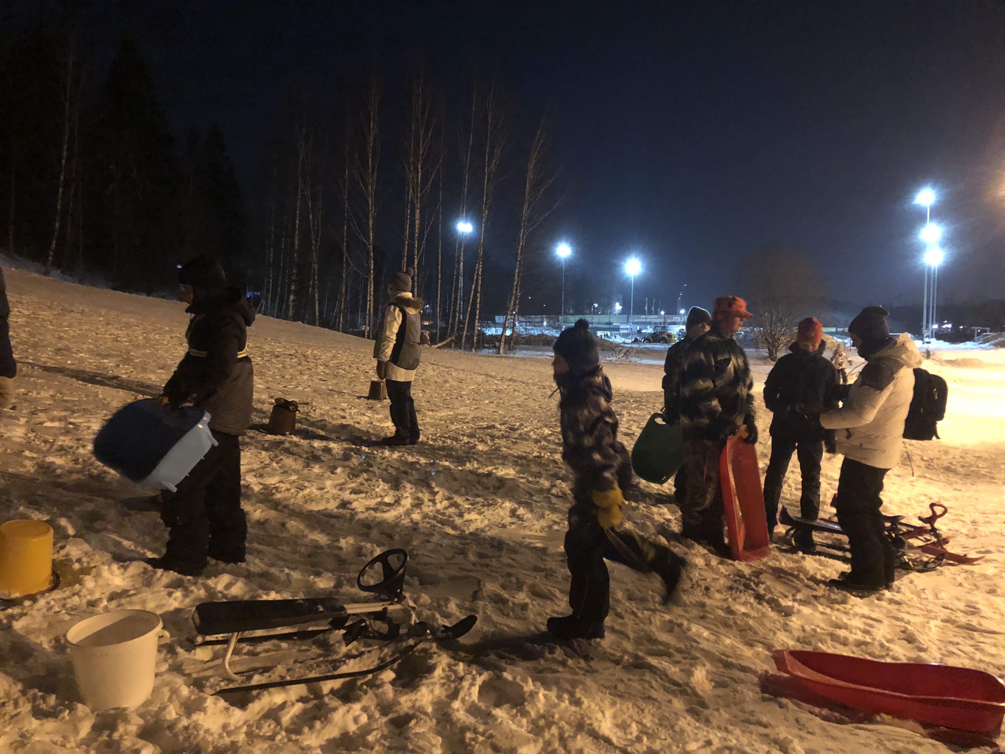 Talvimoniottelun (TMO) kolmas laji - kukkulan valloitus, tapahtui 14.1.2021 Kivenlahden Urheilupuiston pulkkamäessä, kirpeässä -18C pakkassäässä.