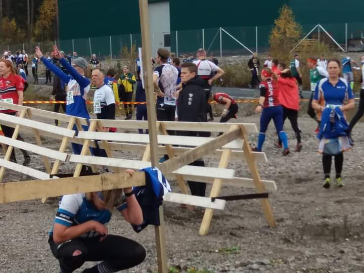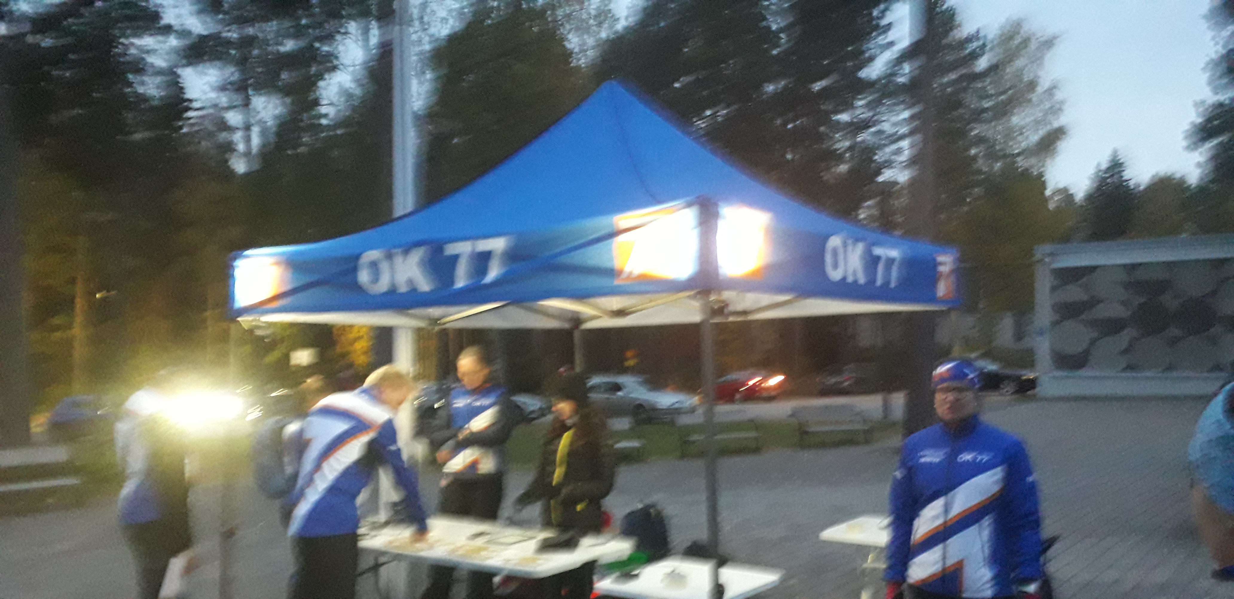 Kisa käytiin syksyisessä, lempeässä tihkusateessa, joka hieman latisti tunnelmaa vaihtopuomilla mutta ei välttämättä seurateltassa. Olimme liikkeellä kolmella joukkueella - kaksi kilpasarjassa ja yksi joukkue kuntosarjassa. Kaikki kolme joukkuetta (45 suunnistajaa) suoritti osuutensa hyväksytysti. Matka on kaikille sama, mutta kuntosarjaan ei tarvitse hankkia lisenssiä tai sen osalta murehtia ikä- tai sukupuolirajoituksista. Matkaan lähti 115 joukkuetta joista 51 kuntosarjan puolella.