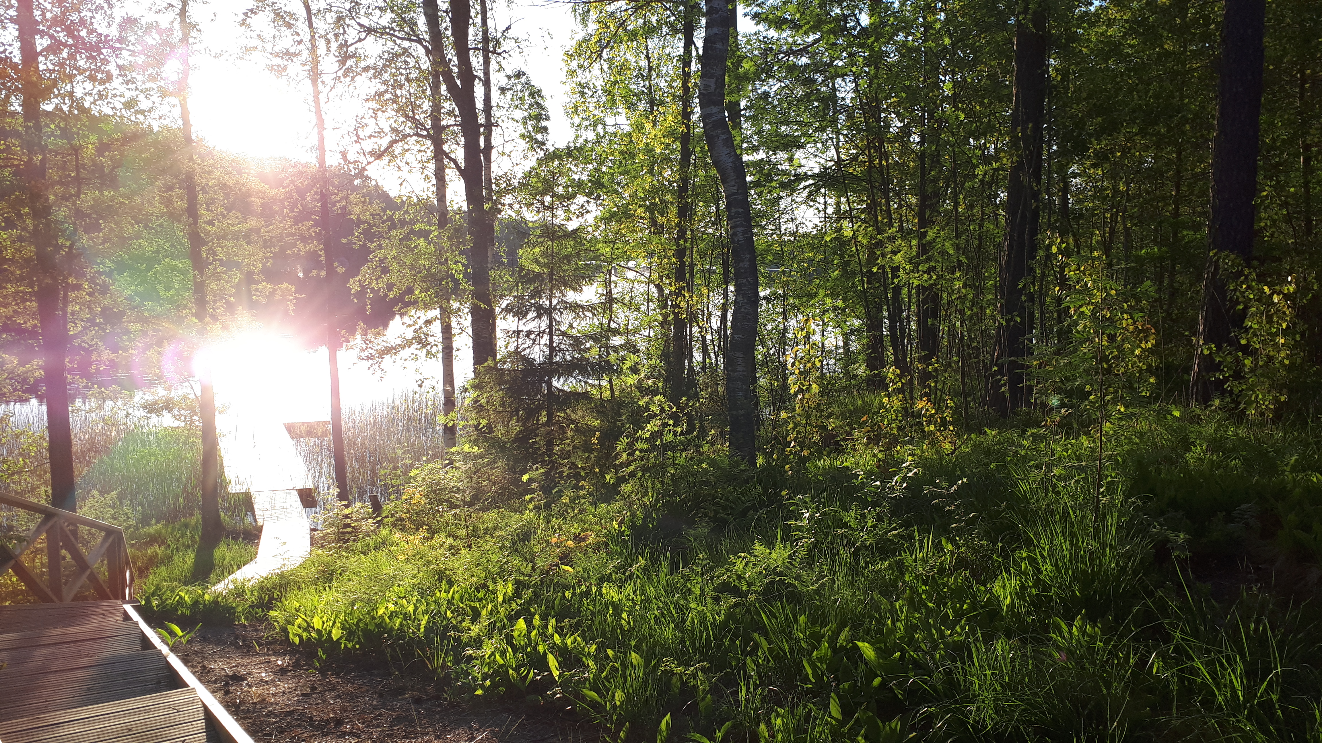 Foto (Carola Ray). Solen blickar ned på Storträskets yta.