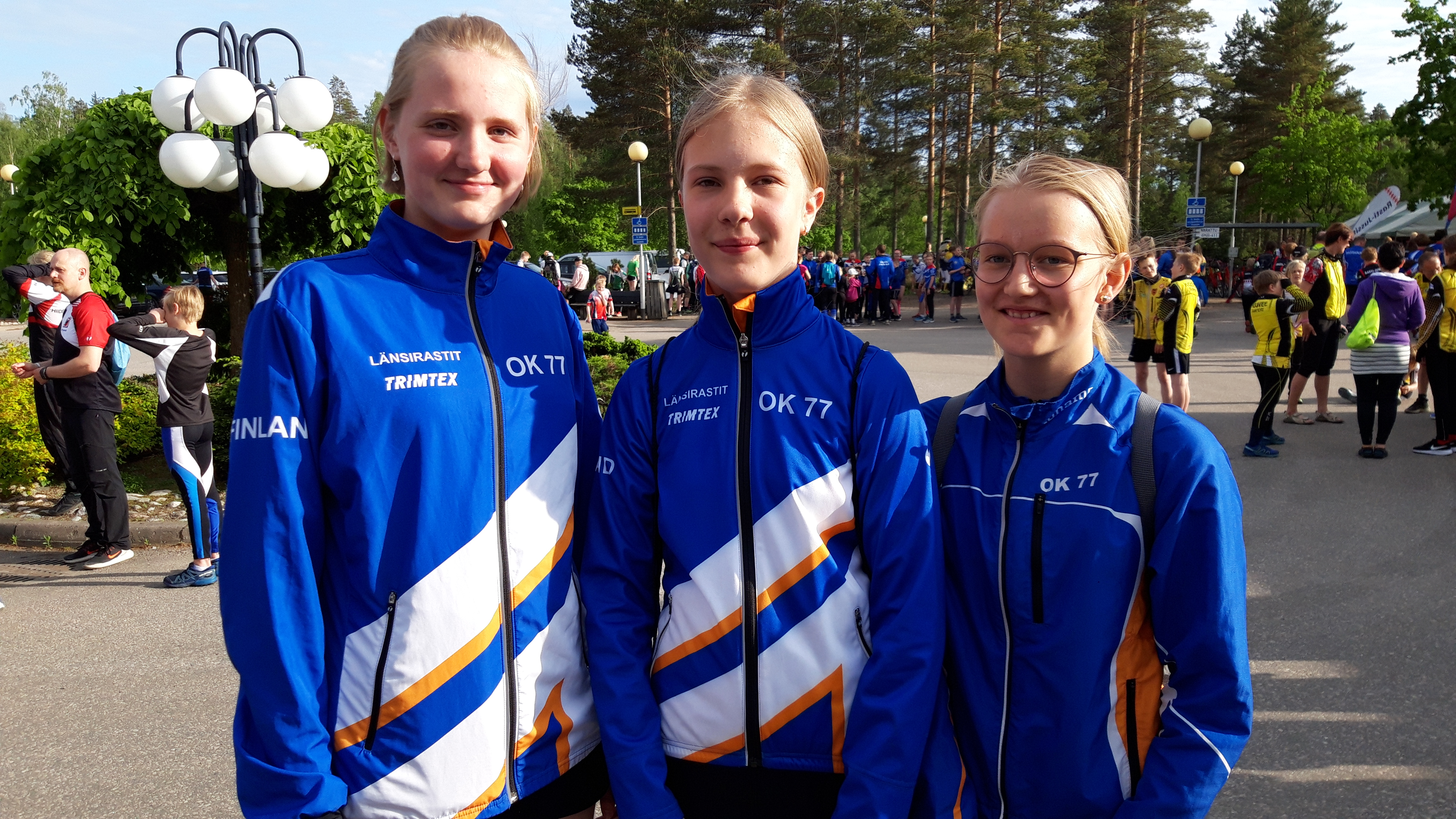 Lägret, som hålls invid Imatra statshotell, har en flicktrio från OK som deltagare; (fr.v.) Ellen Tolkki, Linnea Weckström och Alexandra Backman. Lagledaren Timo står bakom kameran. Lägret körde igång på måndagskvällen med invigning och sprintorientering. Lägret, som arrangeras varje sommar, bjuder på dagliga ol-träningar samt andra sommarsysslor. Lägret avslutas torsdagen den 6 juni.